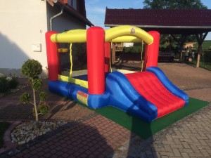 Vermietung einer kleinen Hüpfburg mit Rutsche.